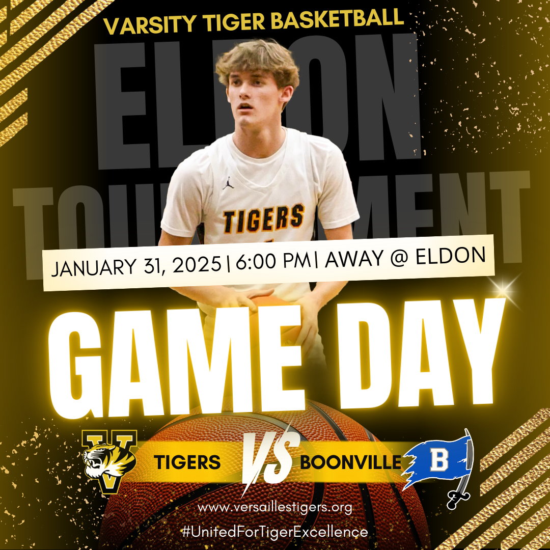 GAME DAY - Friday, January 31 - Versailles Tiger Basketball vs. Booneville @ Eldon Tournament (AWAY) 6PM (@ Eldon High School Gym)